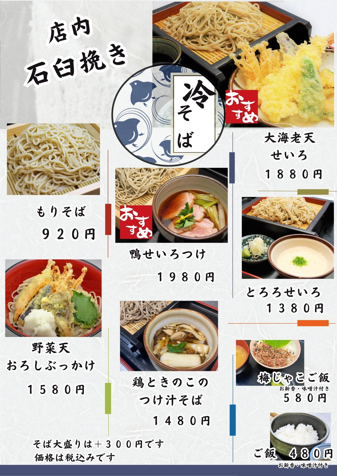 また、十割蕎麦は味香りを損なわないように店内の石臼でゆっくり製粉し、ご提供をしております。