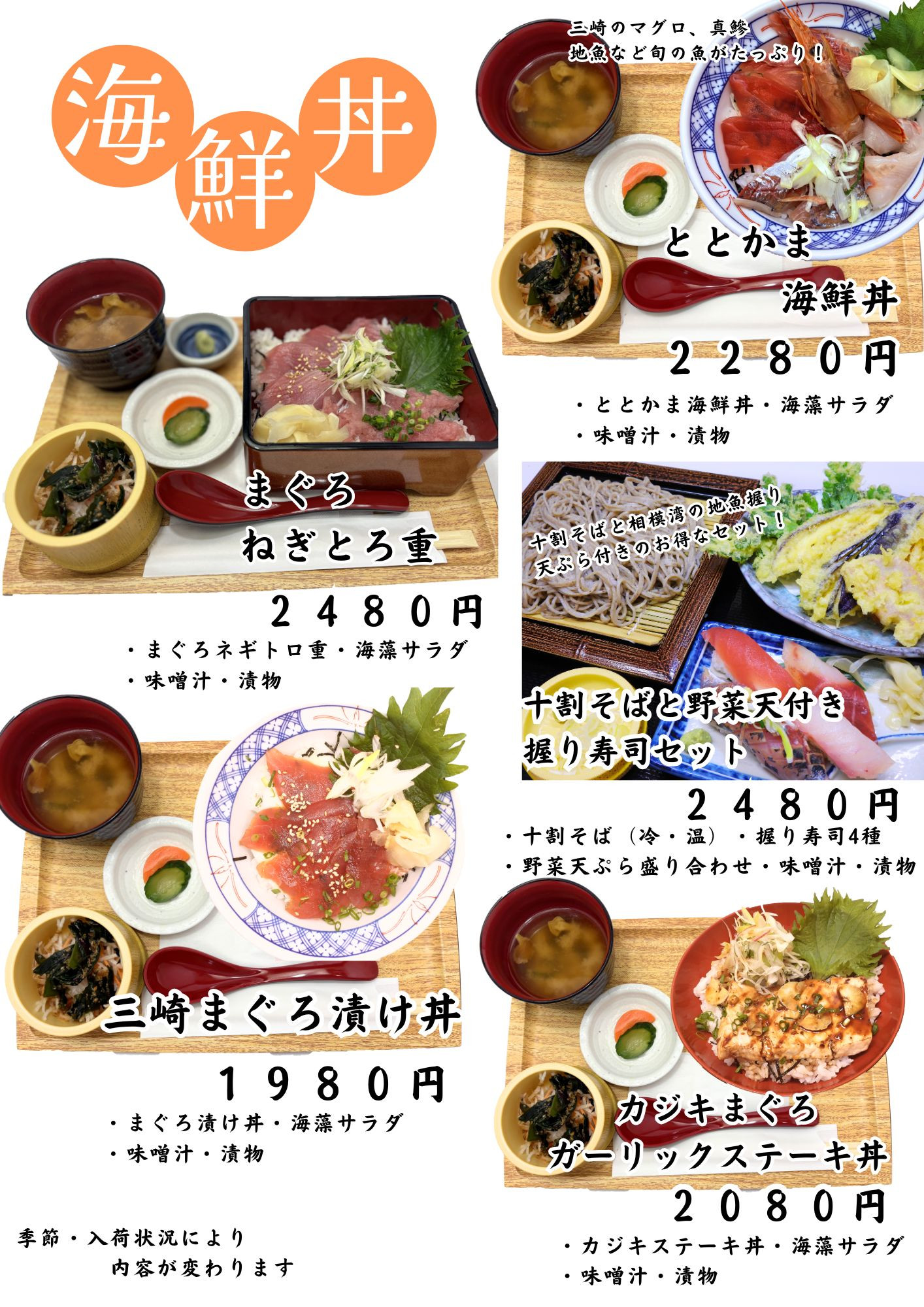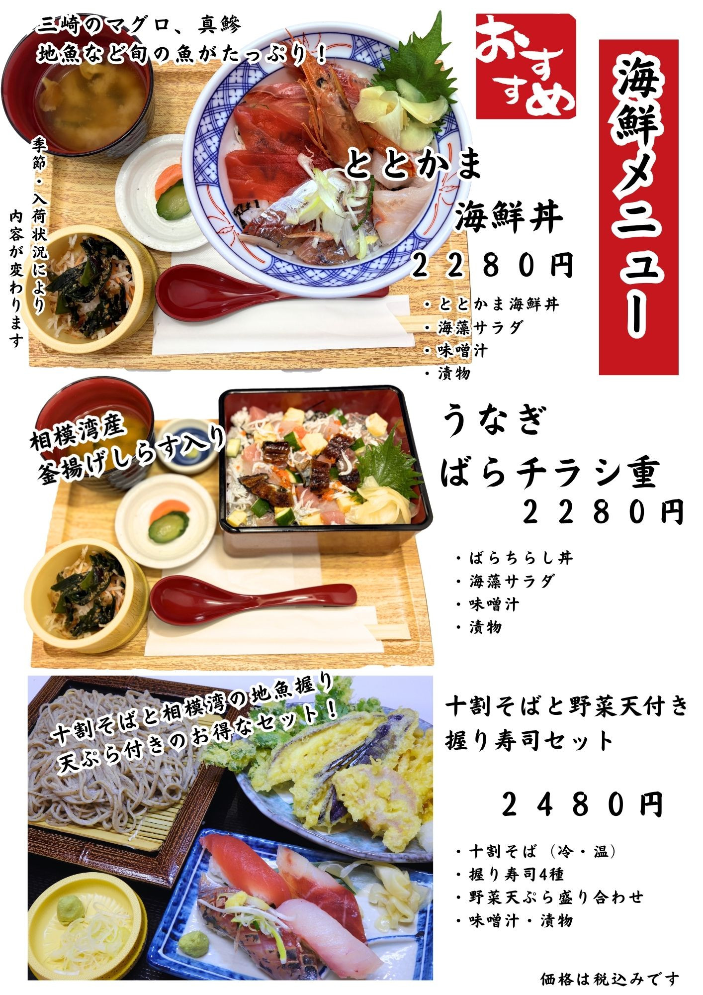 湘南しらすや、根付きの鯵など面前の相模湾の新鮮な海の幸を、寿司や海鮮丼などでご提供しております。