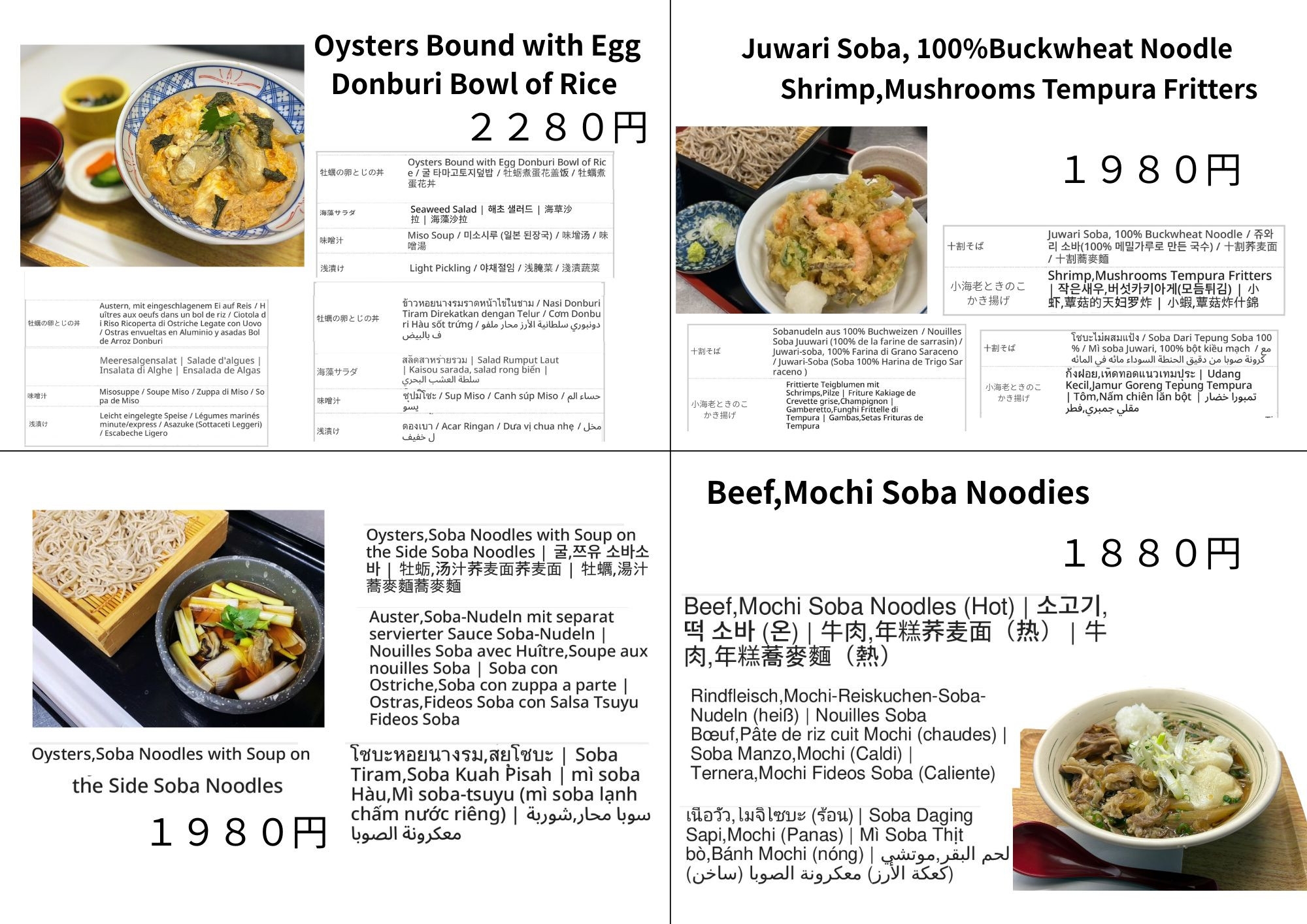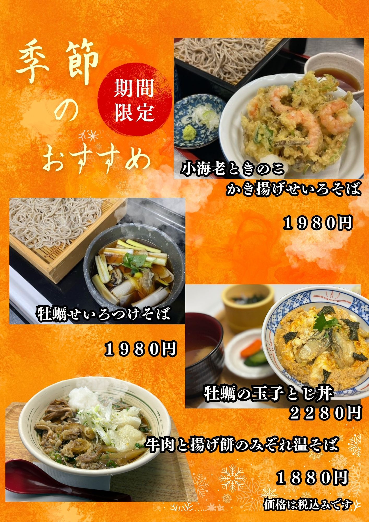 また、十割蕎麦は味香りを損なわないように店内の石臼でゆっくり製粉し、ご提供をしております。